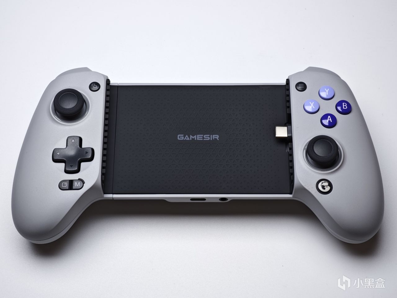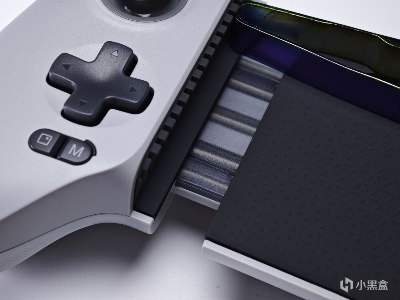 可以看到在手柄的中间部分,有一块凹陷的位置,原本的手柄像是从中间分裂一样往两边让了位置,中间自然就是给手机留的空间。两侧的手柄部分采用的是类XBOX布局,整体的握持手感除了宽了一点之外基本还是原汁原味。