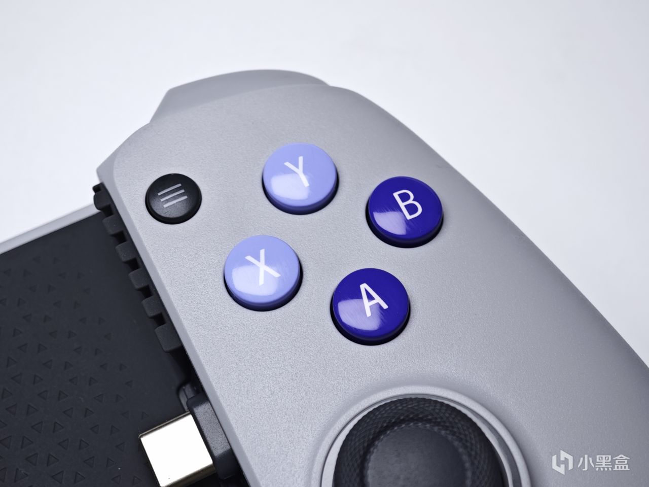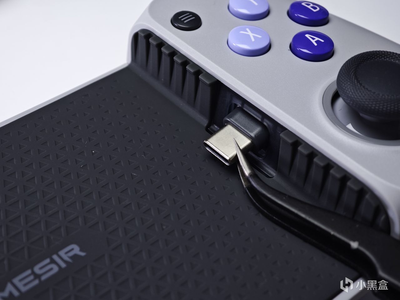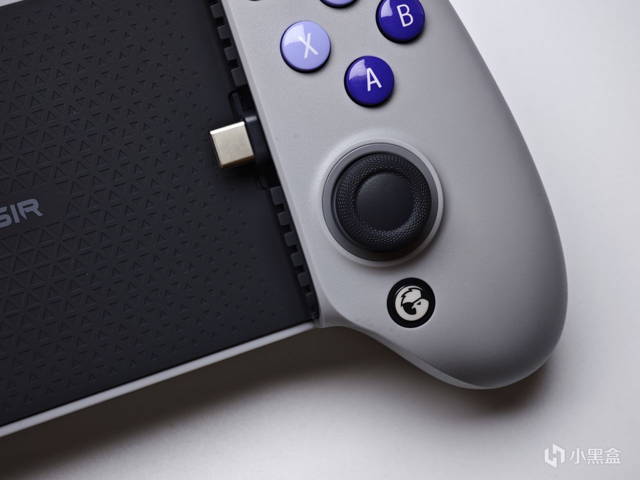 给手机预留的这部分空间,整体采用的应该都是硅胶或橡胶材质,可以在游玩的时候有效保护手机的外壳,以防刮伤或是磕碰。同时可以看到接口部分采用的是极为先进的Type-C口,可以适配目前的大部分手机包括华为、苹果(15系列)、小米等等。C口本身也支持调整角度,而不是固定的,可以更好的适配不同厚度的手机,不过本身并不是很深,建议摘壳使用,也为了更好的散热。
