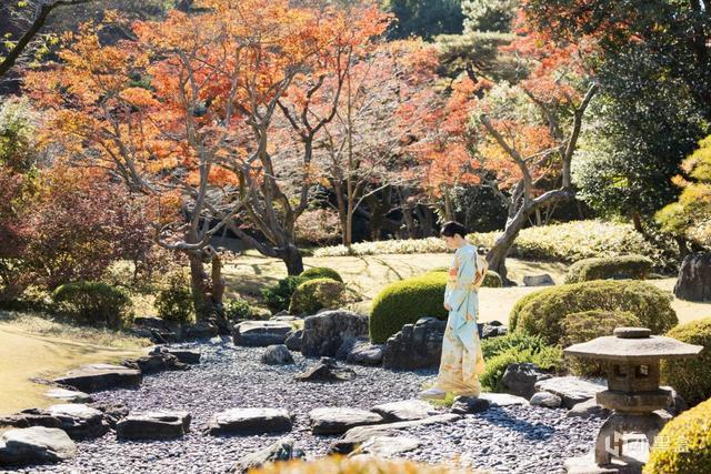 在佳子生日当天,日本皇室按照惯例发布了她的肖像照,佳子身披和服现身私家园林。