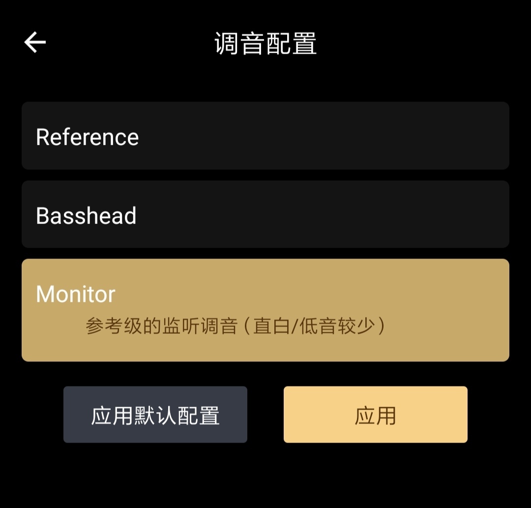 这个操作还是需要用到水月雨的官方APP(MOONDROP Link) ,默认情况下是“标准”低音,我们可以根据自己的喜好,在(监听、标准、氛围)三档不同的低音风格下进行切换。