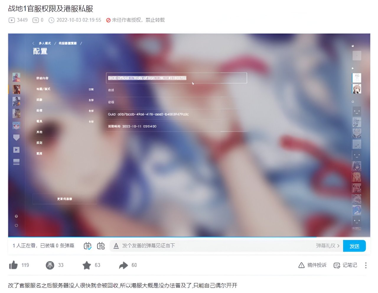 2022年10月3日,22在B站上传了一部视频。视频中,他利用服务器漏洞取得了官服的管理员权限,把自己调到了对面队伍,还修改了官服的服务器名称
