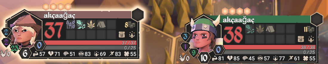 属性决定了他们遭遇事件的成功几率,每个职业也都有着自己的技能,比如铁匠有几率免疫这次伤害,还有学者结束一回合后有几率恢复专注点数。