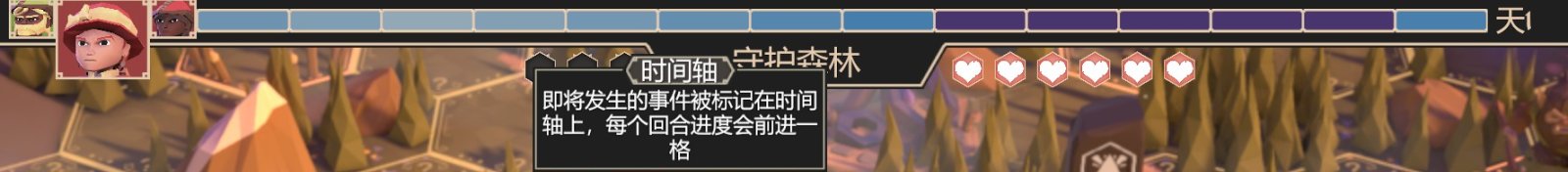 第三个人结束回合后,时间会前进一步,紫色区域为夜晚,夜晚怪物更多。爱心为角色生命池,角色复活会使用一颗爱心,爱心用完后,所有角色死亡即游戏结束。