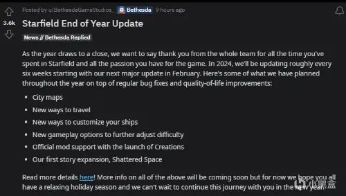 单就游戏体验来说,其实但凡《星空》减少黑屏加载,游戏体验会有质的飞跃。以前觉得玩家反馈大都围绕黑屏加载声讨有些夸张,一周目体验的我觉得问题不大。但真正体验完一周目之后,阻碍我继续多周目探索的就是这频繁的黑屏加载,在游戏的主线核心内容体验完毕以及熟悉各项元素之下,对频繁黑屏加载的介意就愈发严重。但游戏的场景美术与宇宙探索体验还是独一份的,未来这些针对本体的载具、地图等更新希望能对本体的体验有所提升,再期待一次吧,毕竟预购玩家除此之外也没什么办法了,也只能期待新的故事DLC能够有一份出色的剧情体验。