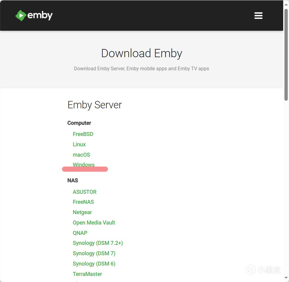 浏览器搜索emby,或直接访问:https://emby.media/download.html,选择embyserve-windows下载-安装-打开。(embyserver学习版使用可参考B站博主帖子:https://www.bilibili.com/read/cv24441258/)。