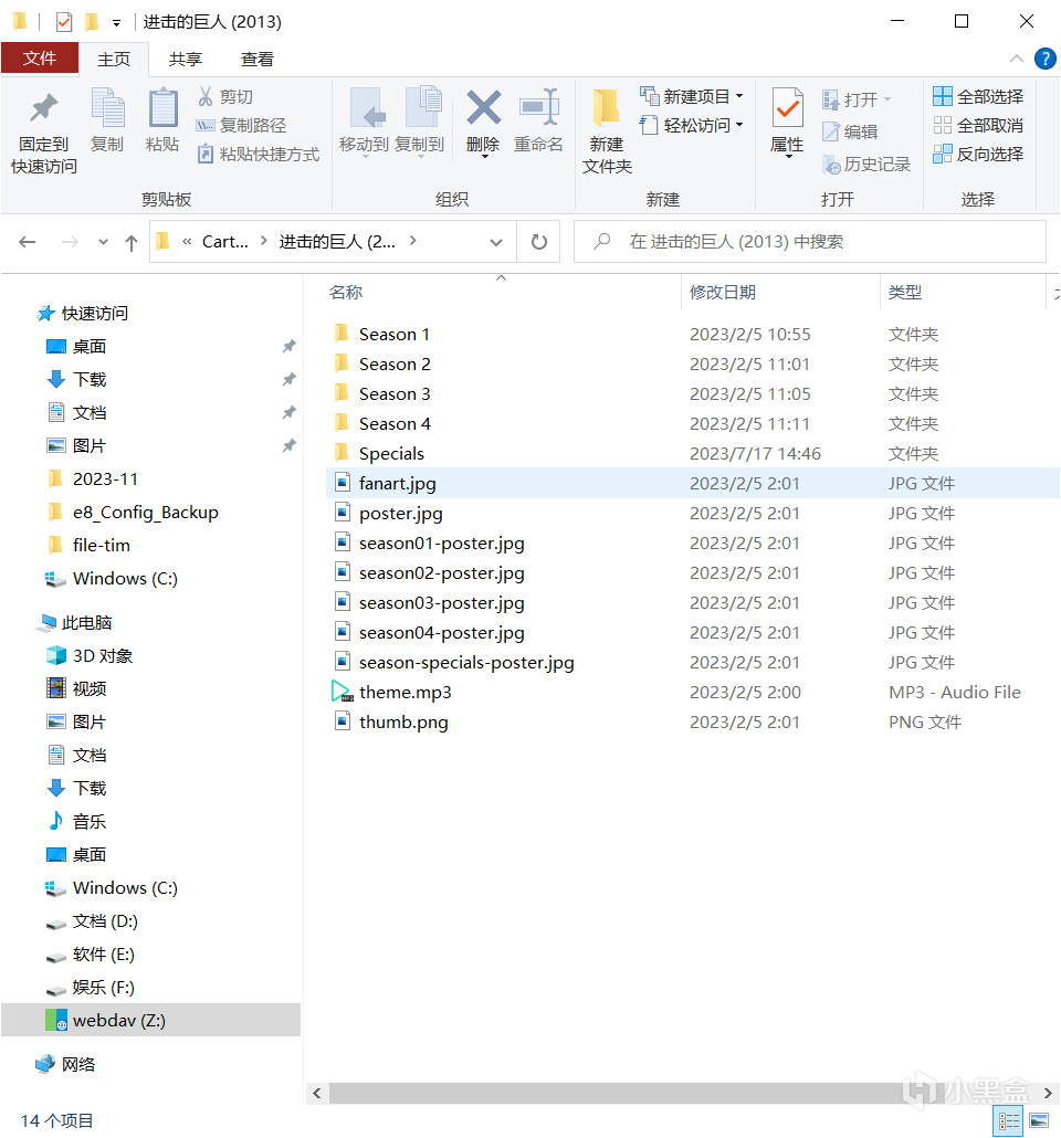 剧集大文件夹内,则是每一季的文件夹,命名格式为:Season XX
