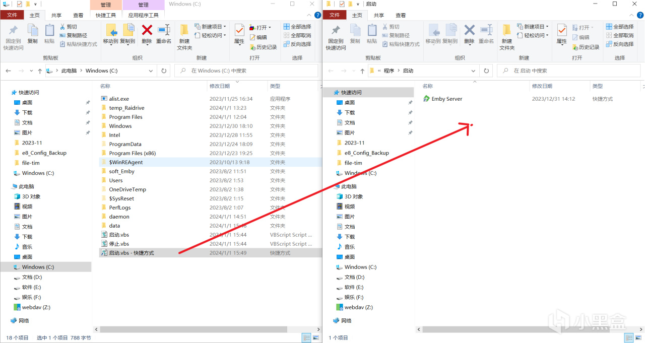 Alist的开机自启:创建启动.vbs的快捷方式。Win+R 打开运行,输入 shell:startup,会弹出开机自启软件文件夹,我们把创建好的启动.vbs快捷方式给复制过来,alist即可开机自启。