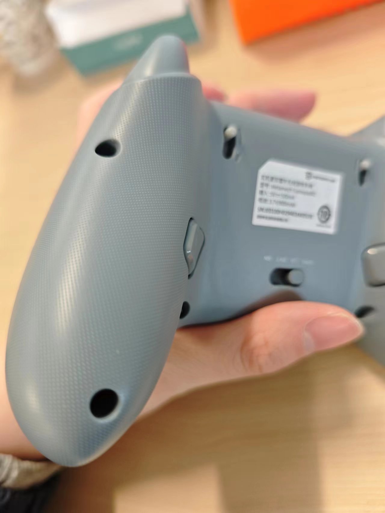 手柄整体主题是灰色,摇杆环是橙色。尺寸大小为155*102*66.5mm