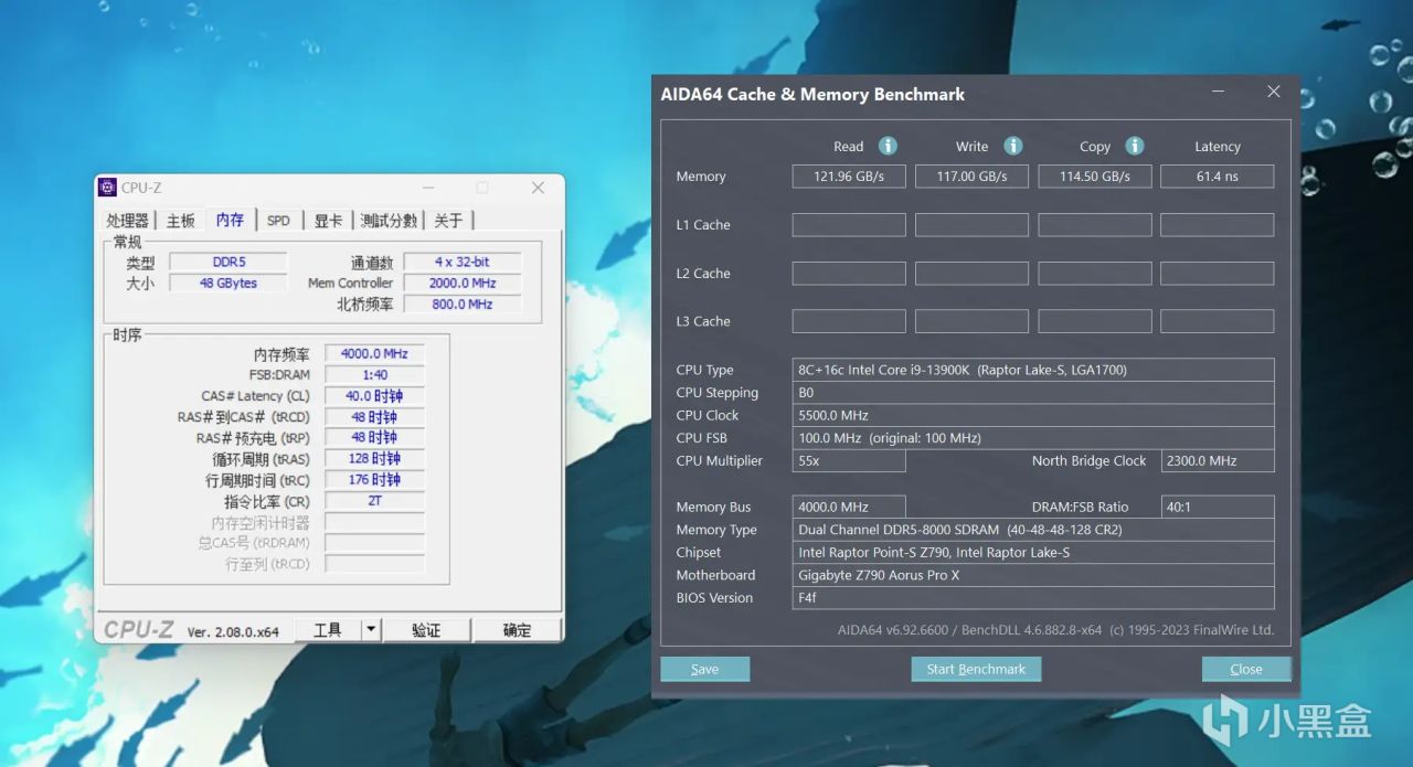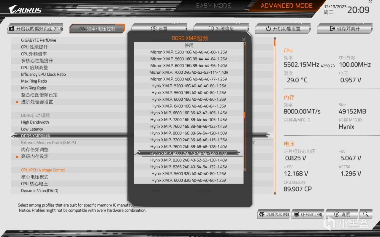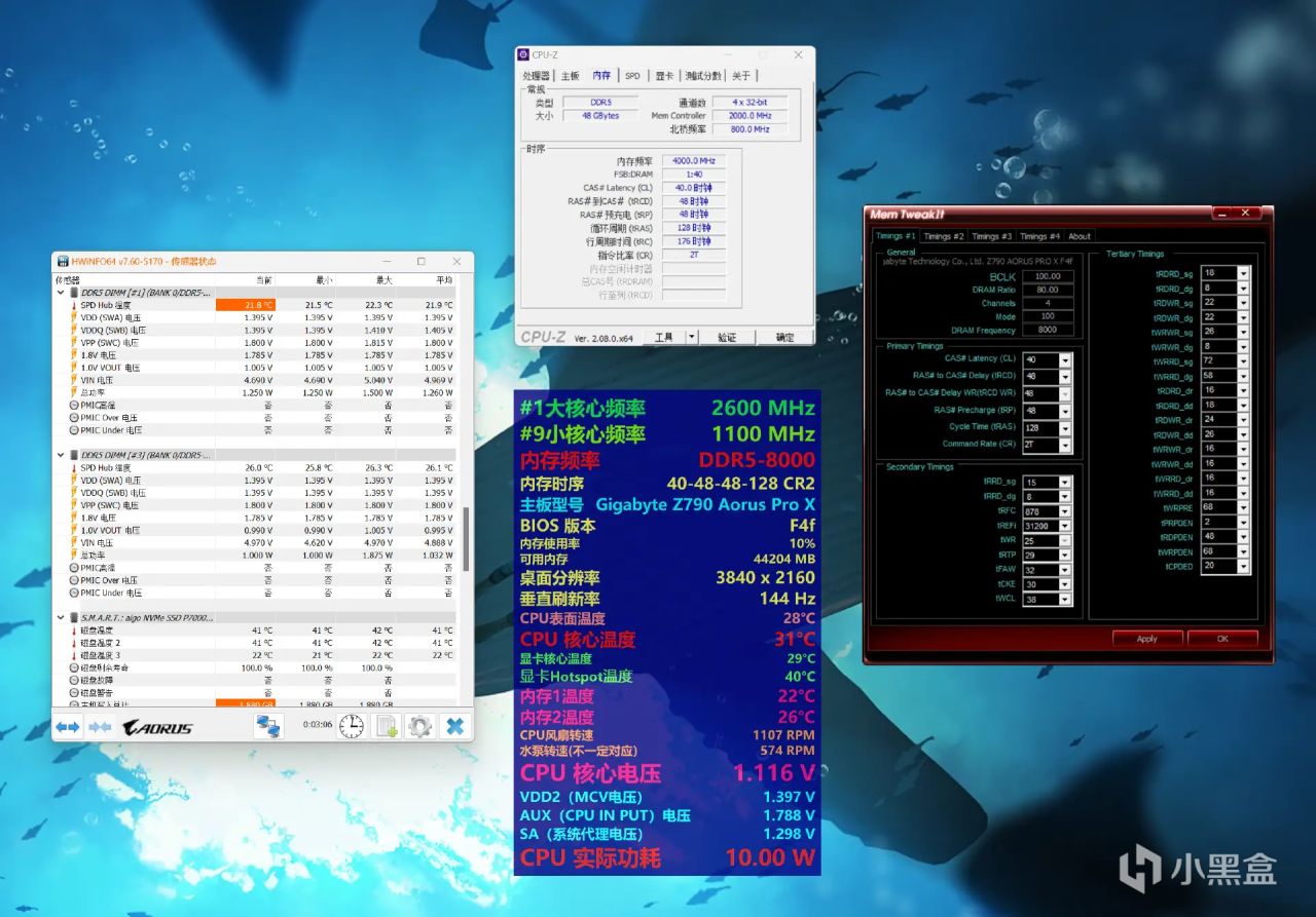 我这次使用的技嘉Z790 冰雕X就有这个功能,直接使用主板自带的超频设置,设置为8000MHz,正常开机并进入系统。这时我们可以看到,8000MHz频率的时序为40-48-48-128。