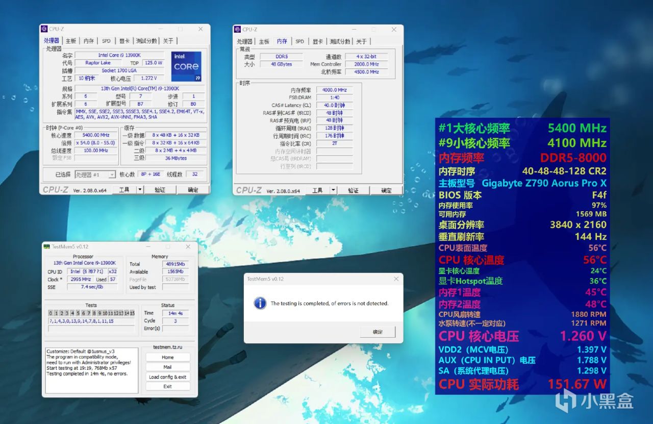 接着我们要进行一个稳定性测试,我这里使用TM5测试跑1US,跑了十分多钟没有出现任何报错,这也就证明我们日后可以稳定的使用这个频率。