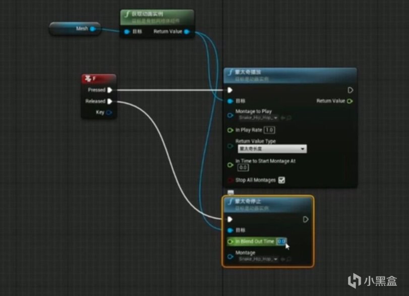如果你給角色綁定了多個按鍵的蒙太奇,當你不對正在播放的蒙太奇做任何限制的時候,你播放另一個蒙太奇就會打斷當前播放的蒙太奇,如果你一直重複播放一個蒙太奇,就會在這個動畫的前幾幀瘋狂抽搐。這就是很多老遊戲的表情系統和打斷後搖的核心機制,而一般當需要強制播放結束才能操作的動畫則會用一個節點來控制,也就是Delay。