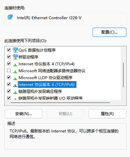 如果没有的话,那你就该检查自己的电脑是否启用了ipv6 。具体步骤为,win+r,输入ncpa.cpl,这个操作将会打开你的网络适配器,然后右键你的以太网网卡,选择属性,在这里检查你的ipv6是否打开。