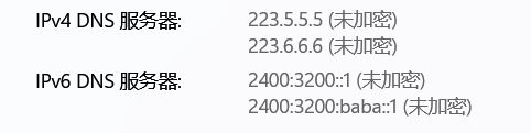 学校提供的主DNS以及备用DNS都只有ipv4的,并未提供ipv6 。所以这时候我们就得寻找网上的公共DNS服务了,本人使用的是阿里的公共DNS(目前只遇到一次炸了的情况www)