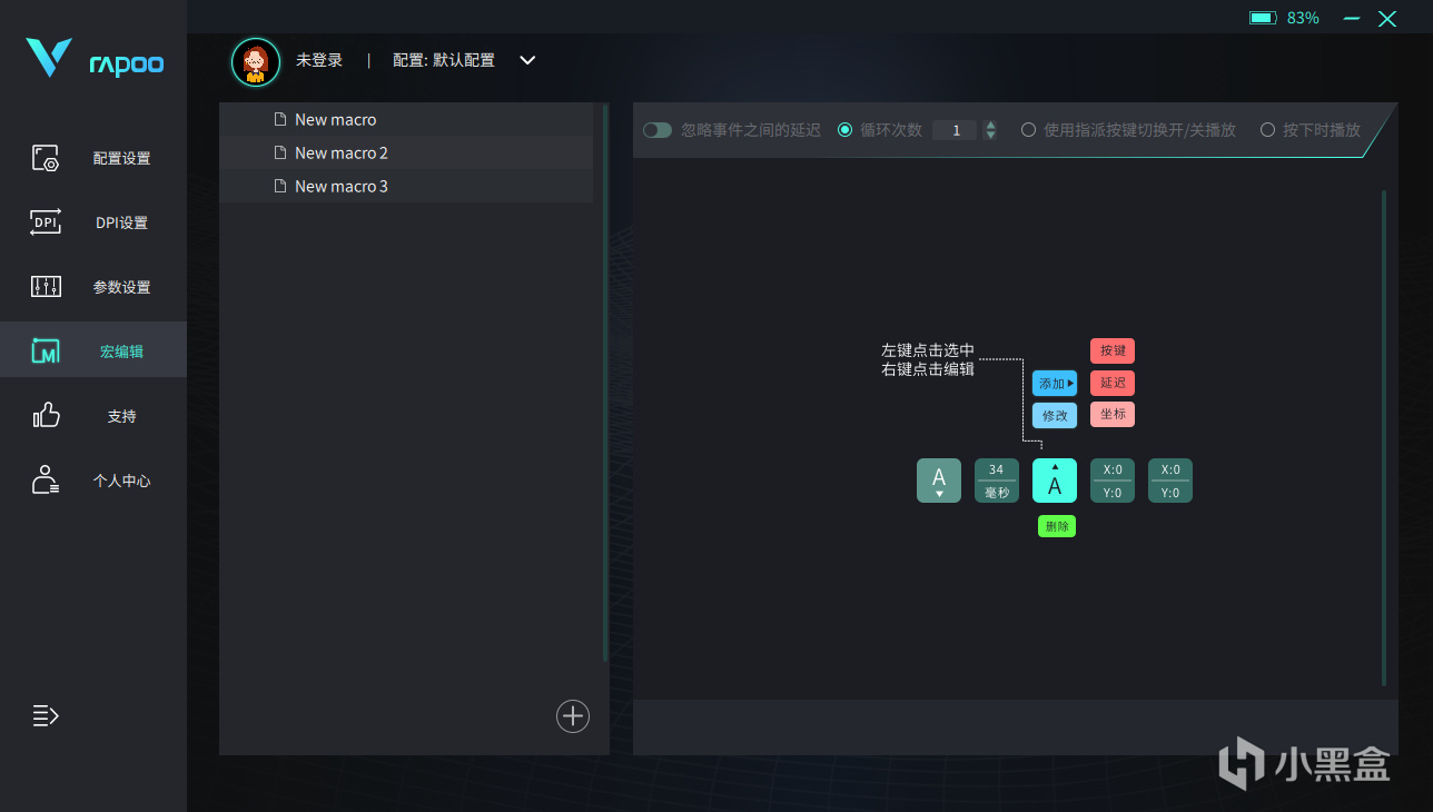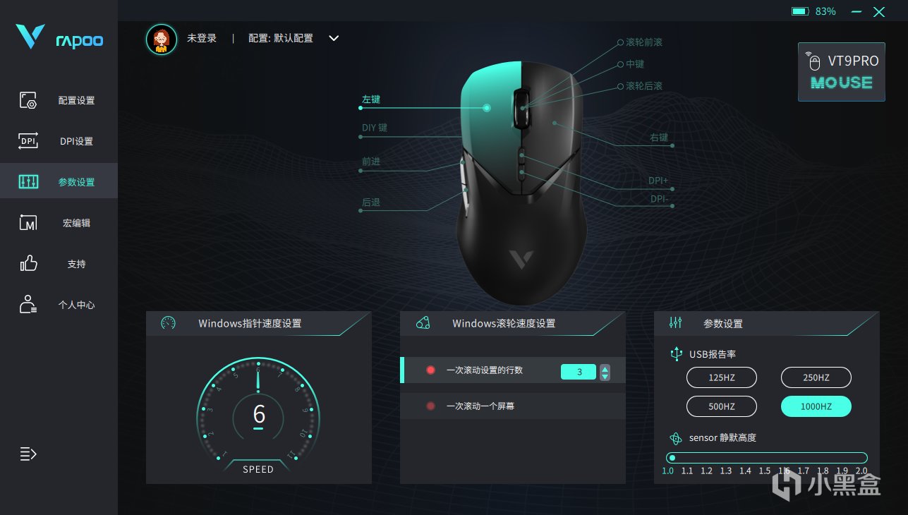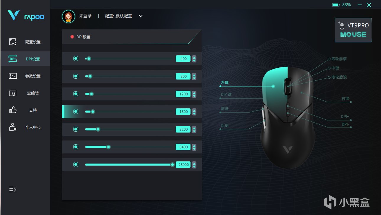 雷柏的配套驅動軟件也很好用,其界面內容豐富,顯示清晰,可以完成(DPI、 宏定義)等多種自定義設置,並且登錄V系列智能雲存儲,可將配置文件上傳至雲共享,分享給其他玩家。