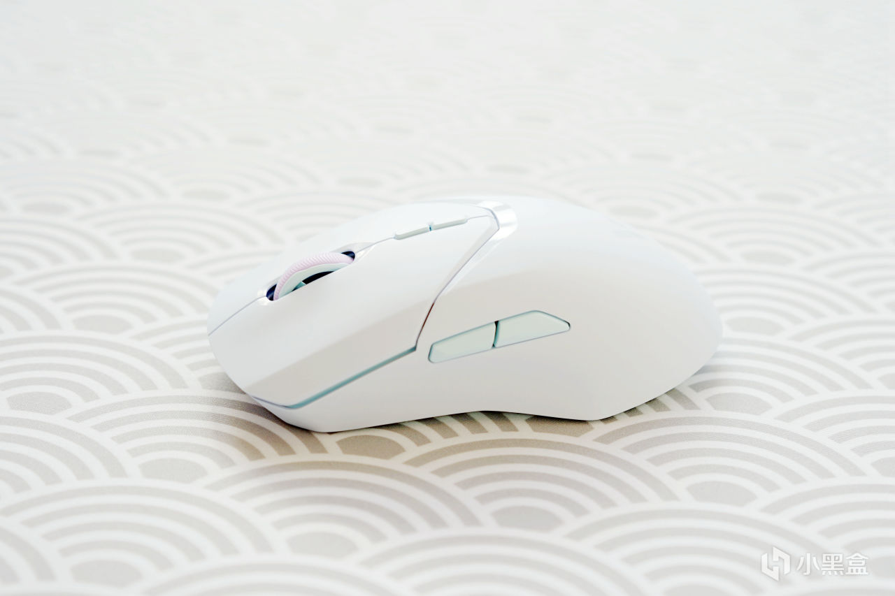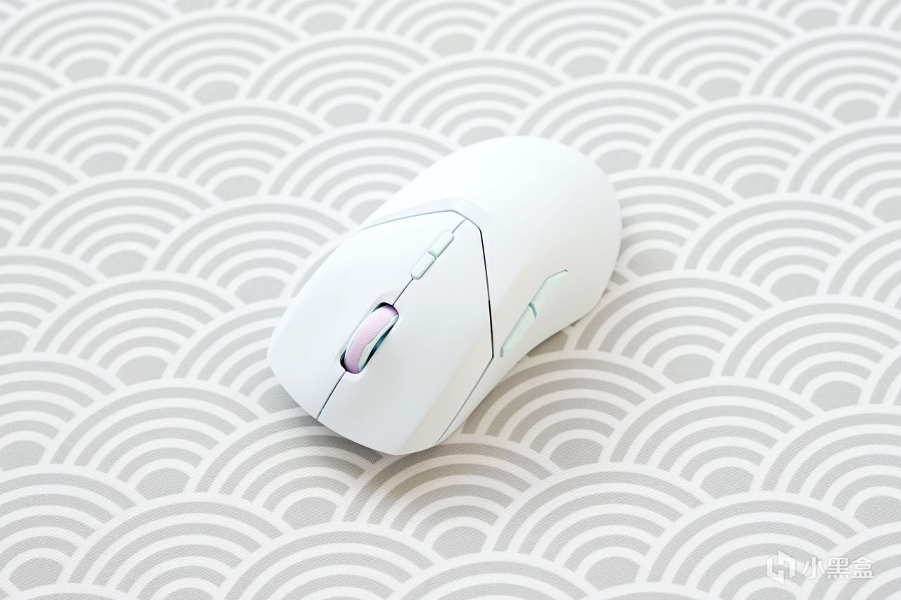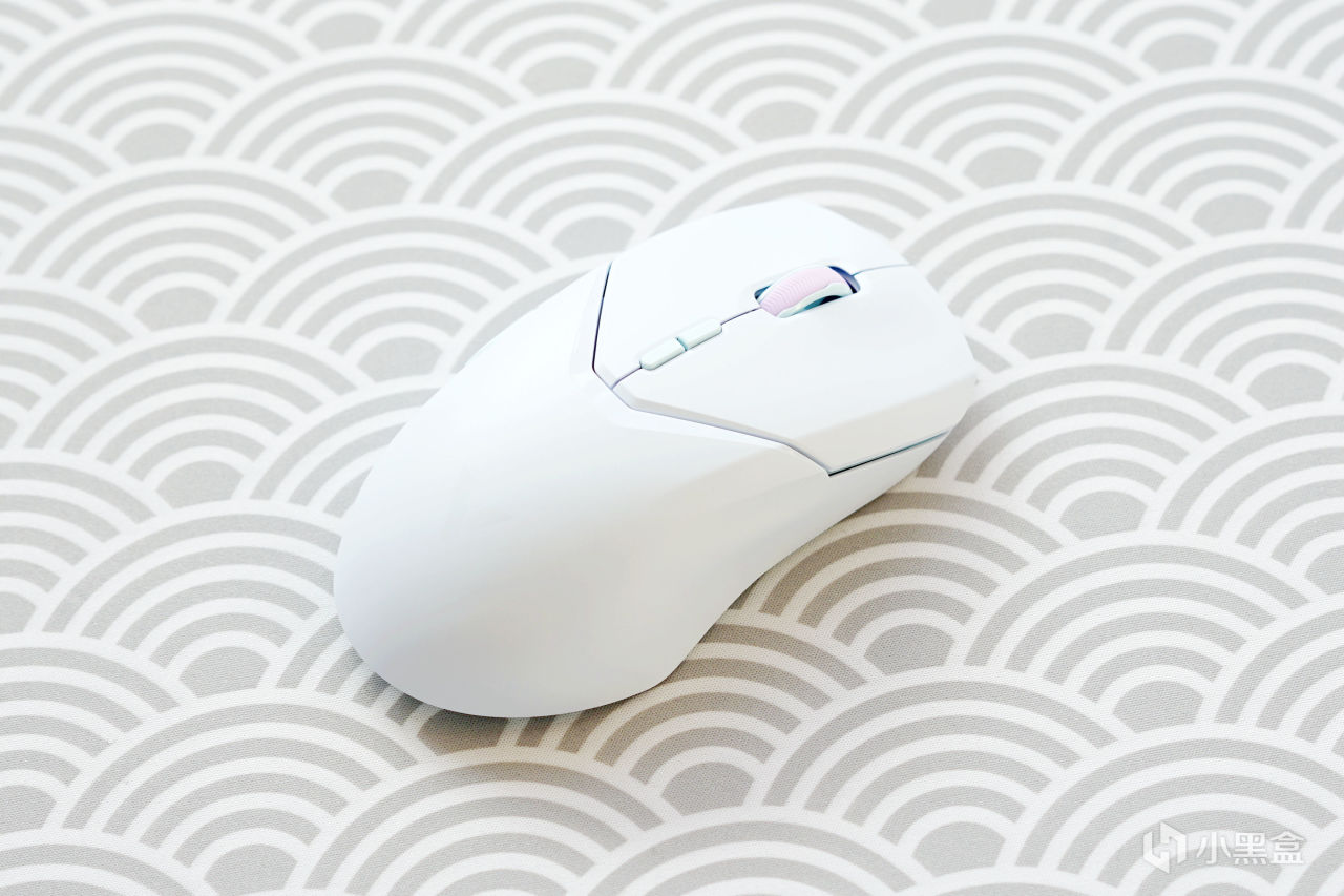 鼠標的配色爲傳統的白黑搭,不過作爲點綴作用的黑色的滾輪和按鍵讓其看上去非常的乾淨,利索,顏值也是挺高的。與VT9 PRO一樣,VT9 PRO MINI也採用了對稱結構,只不過在右側多了一個放置Logo的小板子。
