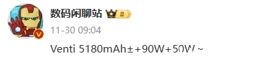 ◆ 電池容量:5180mAh,支持90瓦有線快充,50瓦無線快充;