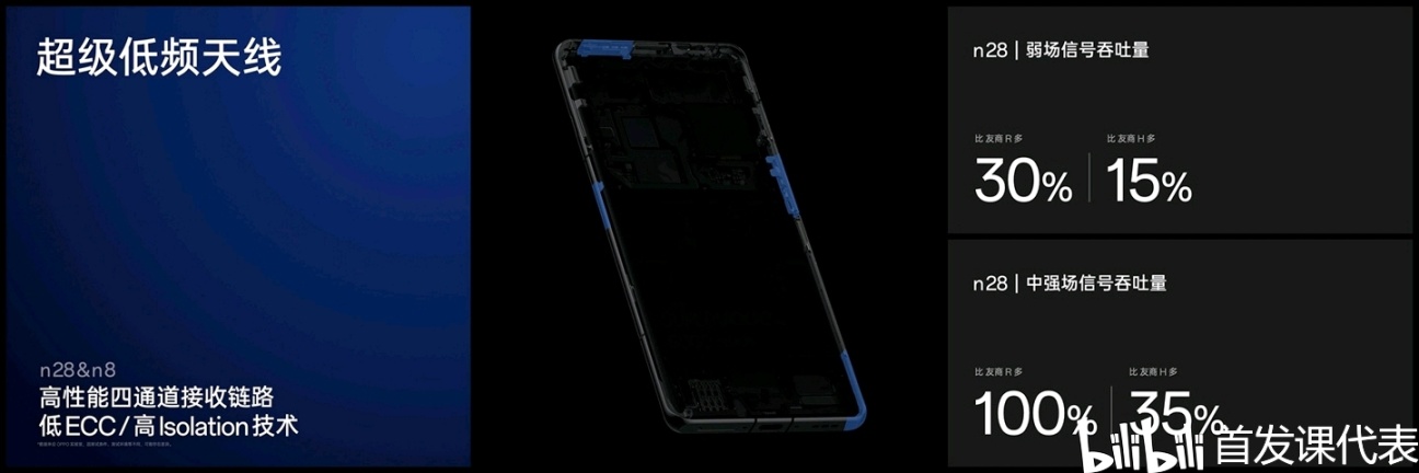 ——在天線信號方面,低頻 n28 頻段和 n8 頻段升級支持超級四低頻天線技術,低頻 MIMO 接收通道增加一倍;更通過應用 OPPO 自研人體電磁理論模型,手握下一代 Find X 旗艦時低頻信號不但沒有降低,反而最多增加了 7dB。