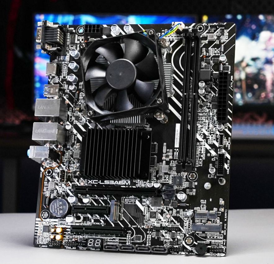 那么说到主板,本次与龙芯3A6000整合的主板是来自上海华硕定制的XC-LS3A6M,它板载7A2000显卡,配备DrMOS供电,提供两条DDR4内存插槽,支持双通道DDR4 3200(最高64GB),拥有一条PCIe ×16(×8通道)插槽、一条PCIe ×8插槽和一条PCIe ×4插槽,全都支持PCIe 3.0标准。存储部分,板载了M.2插槽和4个SATA接口,主板还提供了双千兆有线网卡,COM口、VGA+HDMI视频输出、前置Type-C扩展等实用接口,完全能够满足日常办公娱乐需求。
