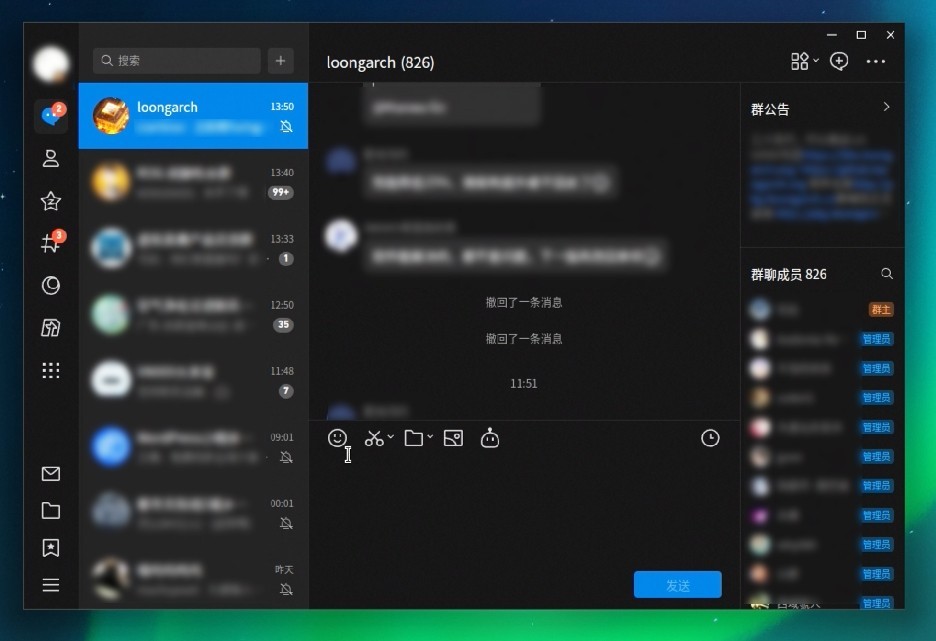 LinuxQQ使用的是重构后用Electron框架实现多端合一的UI,界面清爽,用起来也比较流畅。使用体验和Windows版没有什么区别。微信相对体验差一些,毕竟这是一个通过Wine使用的Windows版,版本较低,很多功能都没有,明显开发进度不及QQ。