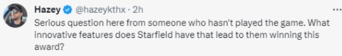 Serious question here from someone who hasn't played the game. What innovative features does Starfleld have that lead to them winning this award?
