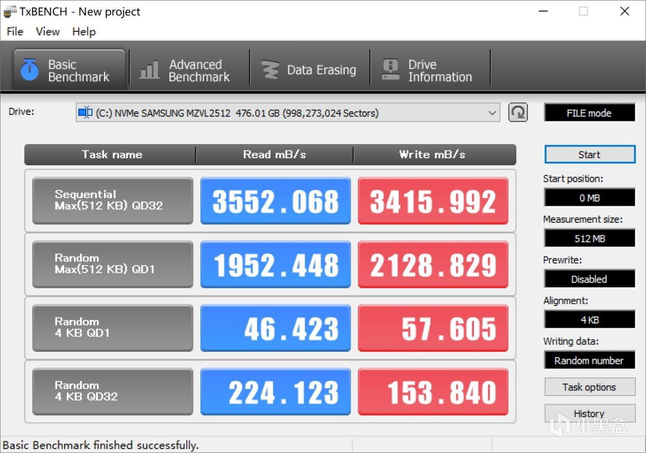 用TxBENCH软件测得华南金牌X99-QD4主板PCIe 3.0 M.2插槽上读写数据: