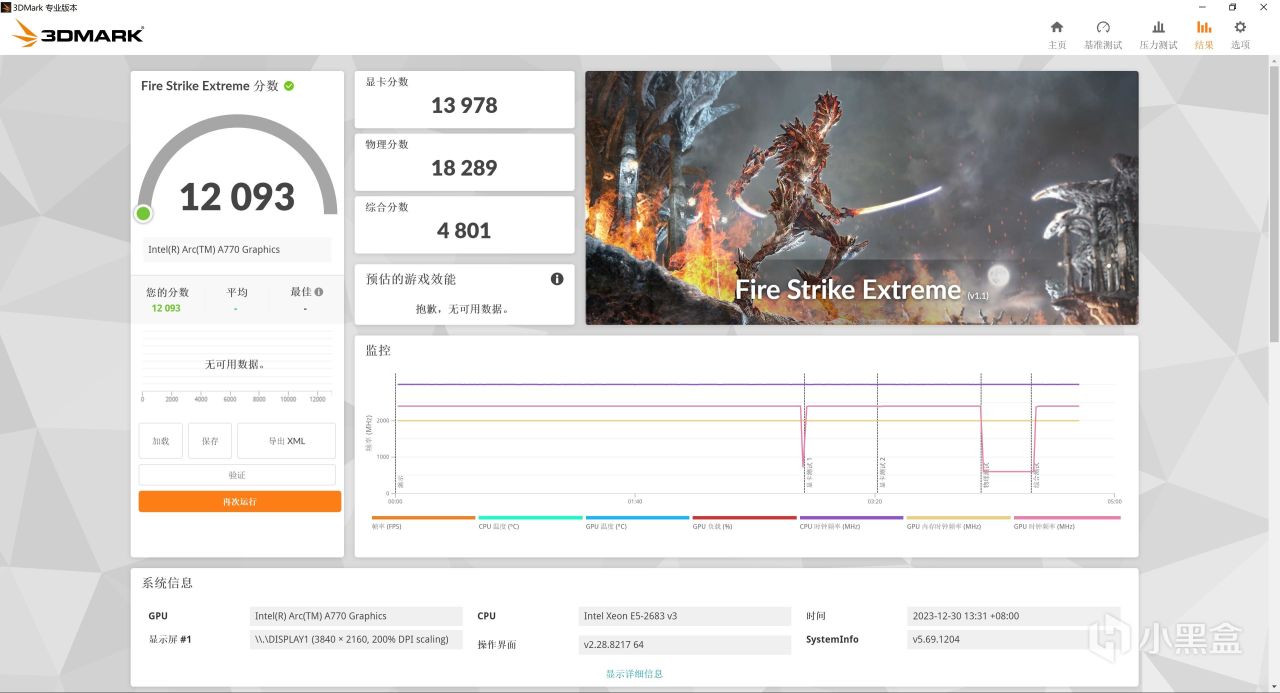 用3DMark 11进行测试Fire Strike Extreme,如图所示: