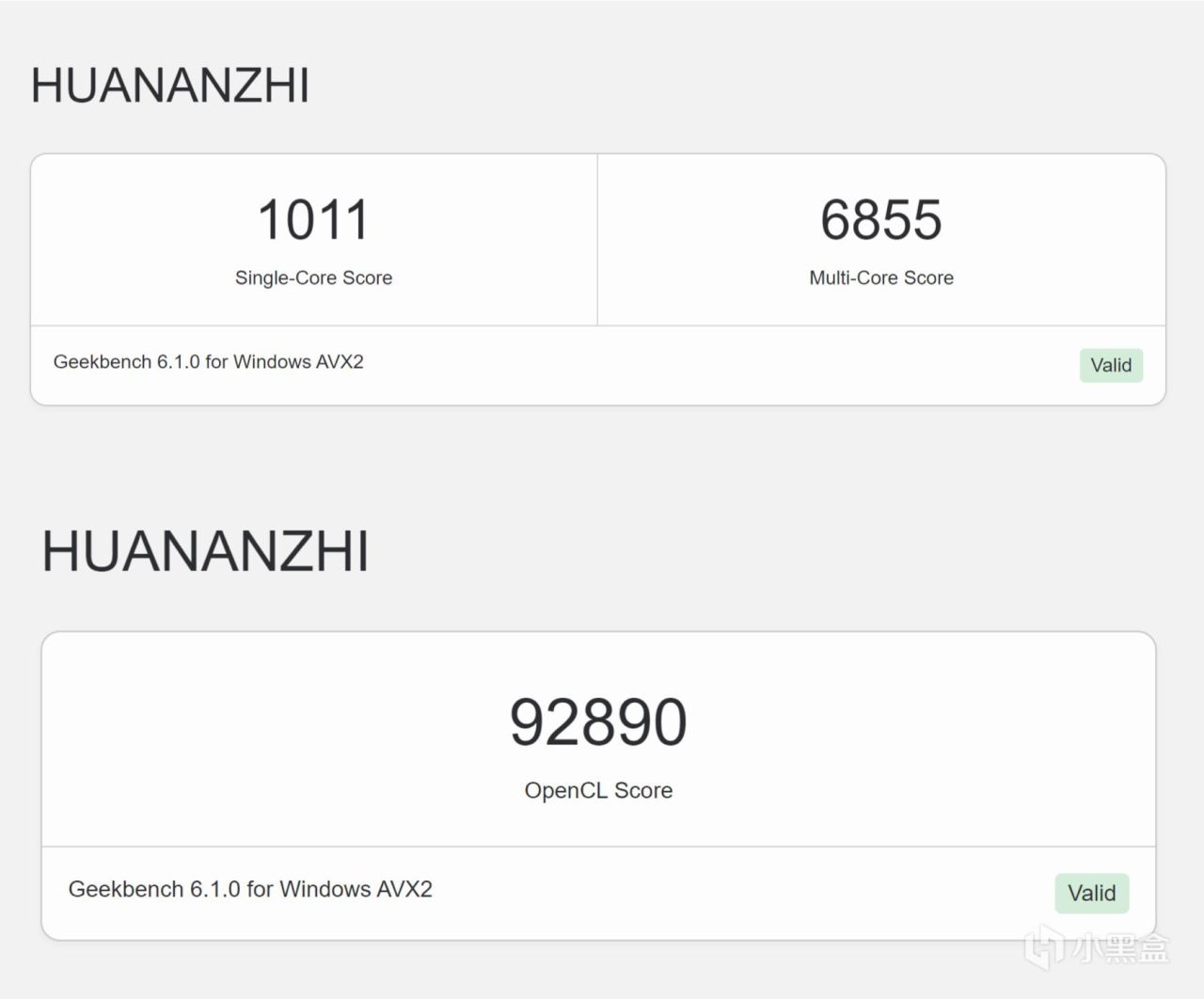 用GeekBench 6.1软件测试,单核性能得分:1011,多核性能得分:6855,OpenCL得分:92890。