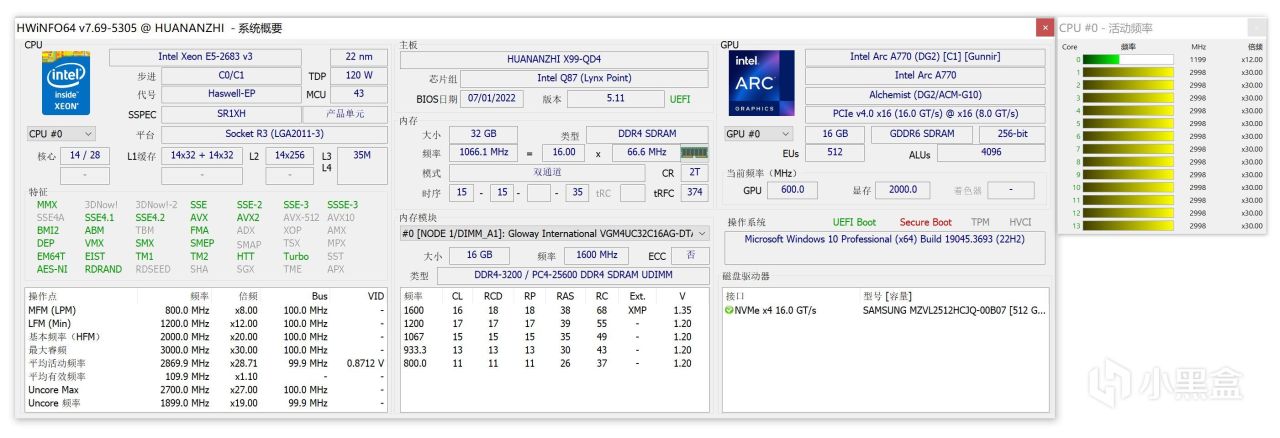 我想说的是终于让X99平台也能玩上A770显卡了,也就证明了X99平台也是能够成为蓝戟A系列显卡的受众群体。