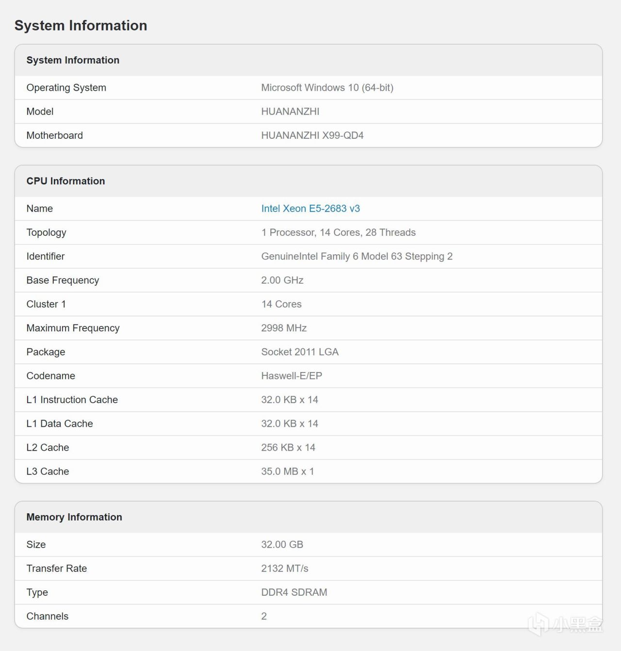 在GeekBench 6.1软件下已经识别到志强U(Xeon E5-2683V3)的硬件信息。