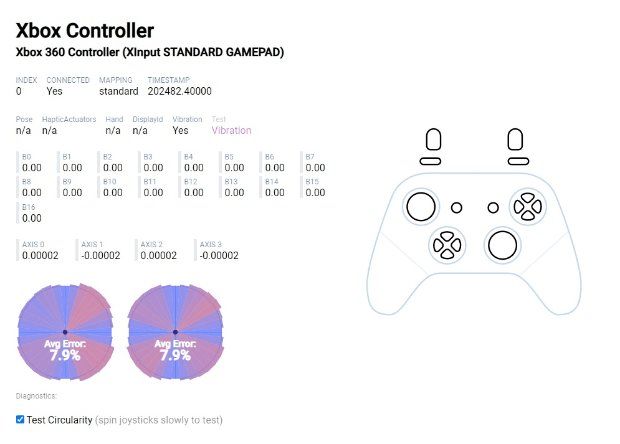 整个遥杆的顺滑度相当不错,也能快速归中,遥杆范围也是非常标准的正方菱形。手柄有线下的回报率是500-530hz左右,无线模式下是250-260hz左右,虽然可能比不过新出的国产手柄霍尔遥杆,但是对比御三家手柄也是个相当不错的表现。
