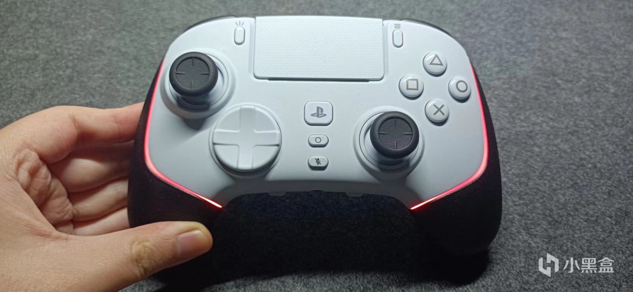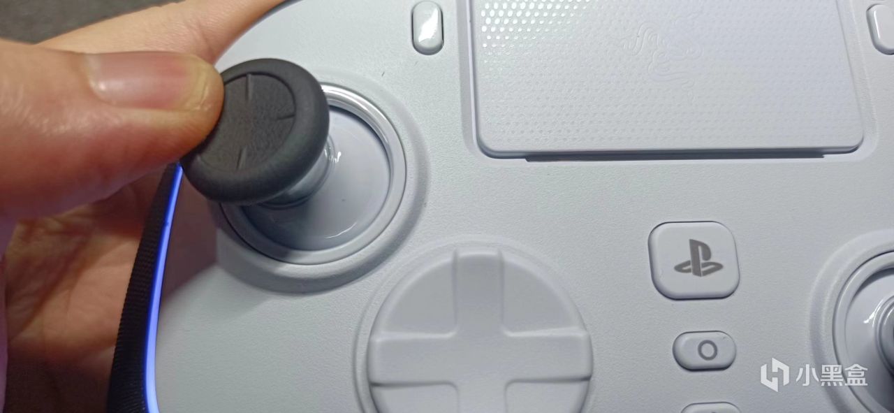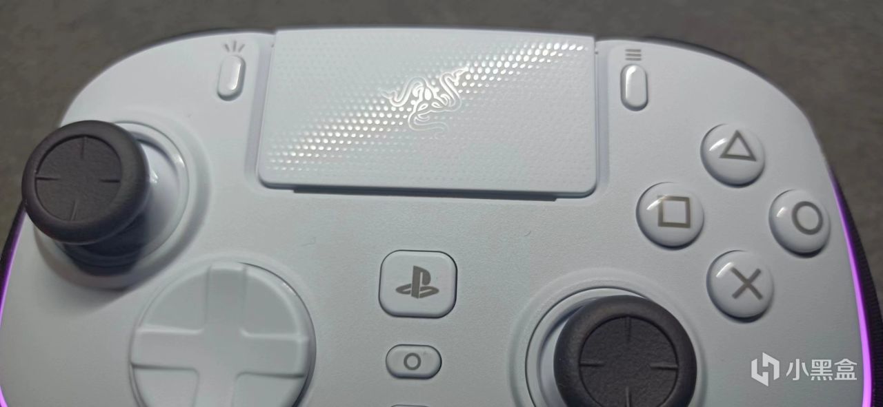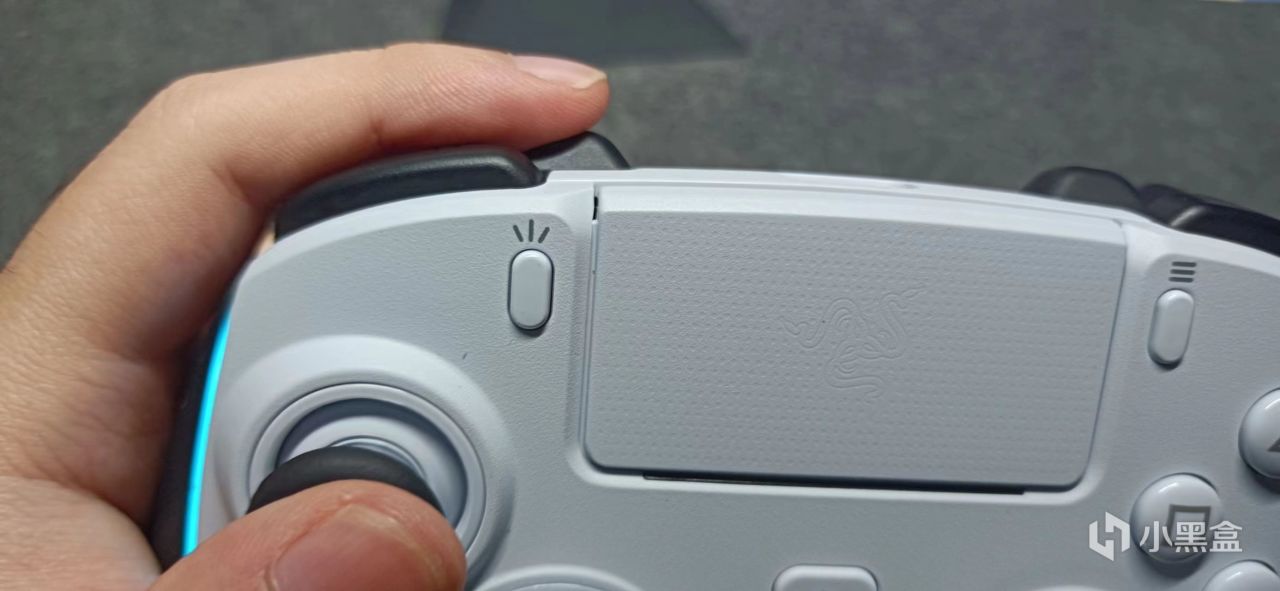 顶部是印有雷蛇logo的触摸板,手感比ps5手柄好多了,按压下去真的有着悬空感。