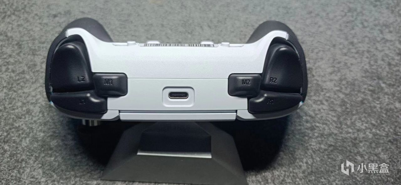 手柄的顶端,相比普通PS5手柄的2个肩键以及扳机键,在两侧的中间各多了一个可自由映射的按键。中间则是typec接口,接口比较善解人意,没有设置太深的入口,普通数据线就可以连接。