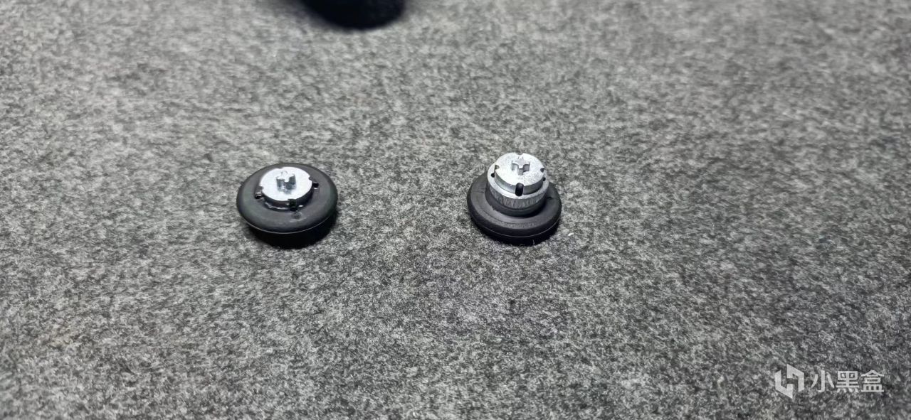内凹,没有防滑纹,外圈有遥杆条,延长遥杆寿命。遥杆调教得不错,阻尼的力度是用过的精英手柄里最好的,介于微软精英的中高档阻尼之间。默认摇杆帽本身的高度比DS手柄要高,能很好地适应各类FPS游戏,更加符合我们的pc玩家。