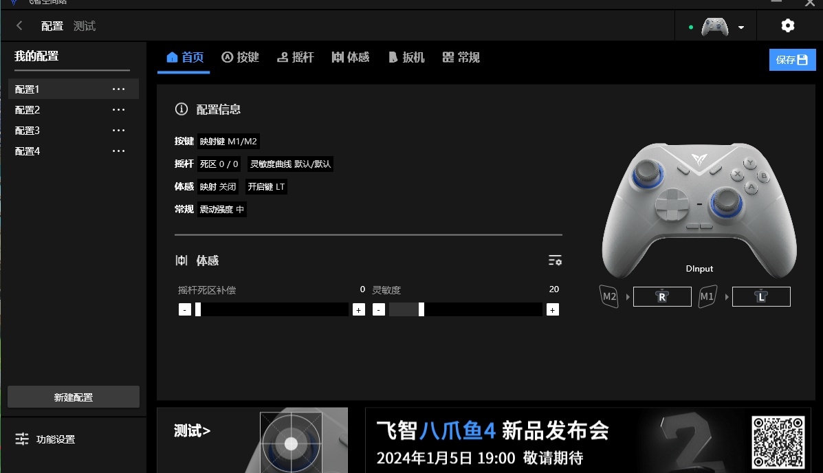 在驱动的适配上飞智也做的很不错,电脑上有专门的飞智空间站,可以用来调节按键啦,摇杆啦,体感和扳机这些东西,并且也不是那种市面上套个模具一样的面板。