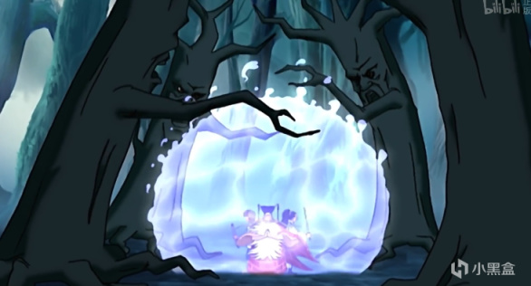 没想到前边几话的树一棵比一棵吓人,没到到后期居然出现了树妖,他们的树枝可以无限延伸,将三人组缠到了洞窟里,小龙比较倒霉,与骷髅作伴。