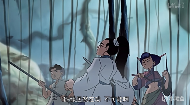 前面还在吐槽黑骷髅不像骷髅,没想到居然出现了真的骷髅,安平受到霸凌掉入神秘洞窟,从死去纸人手中得到了魔牌,没想到的是动画给了骷髅一个特写,把小时候的我吓一跳。