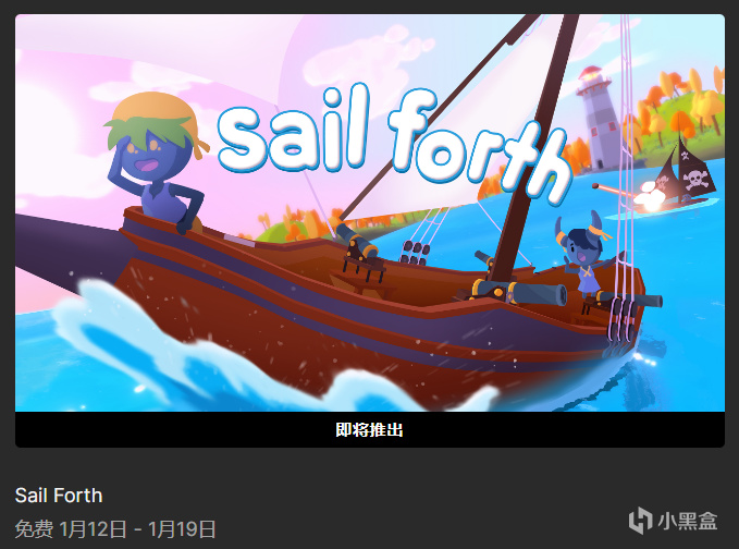 下一周赠送的免费游戏为《Sail Forth》,领取时间1月12日~1月19日。