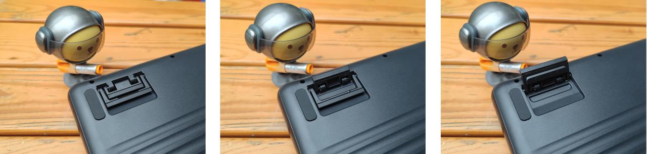 ▲脚撑部分采用了 二段式设计 ,上面分别用数字标注了 5° 以及 7° ,方便使用者随时调节键盘倾斜角度,更加随心所欲。脚撑的接触面还进行了 防滑设计 ,细节拉满。