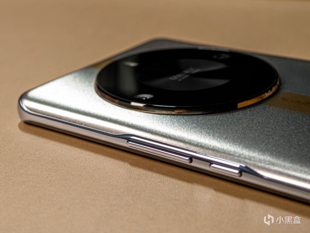 一体的音量加减键和电源键位于机身右侧,边框有向背面凸出“让位”。