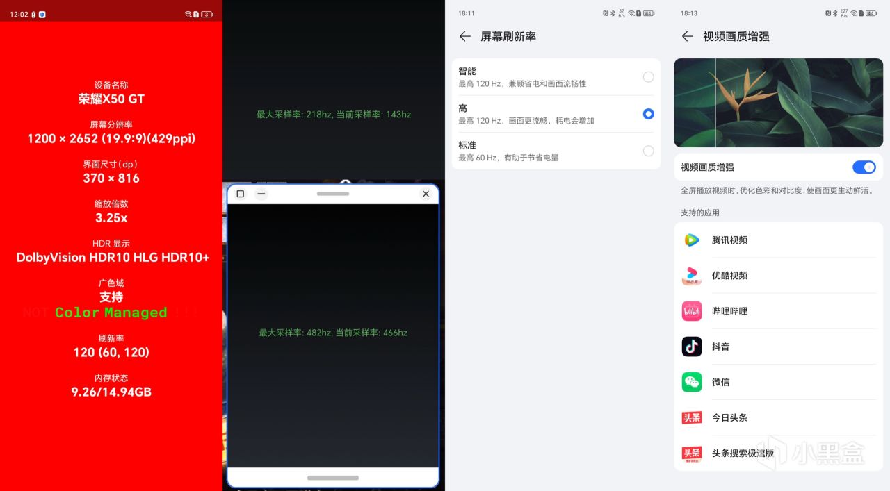 分辨率支持智能分辨率调节,兼顾显示效果和省电。支持对腾讯视频、抖音、头条等App的视频画质增强。