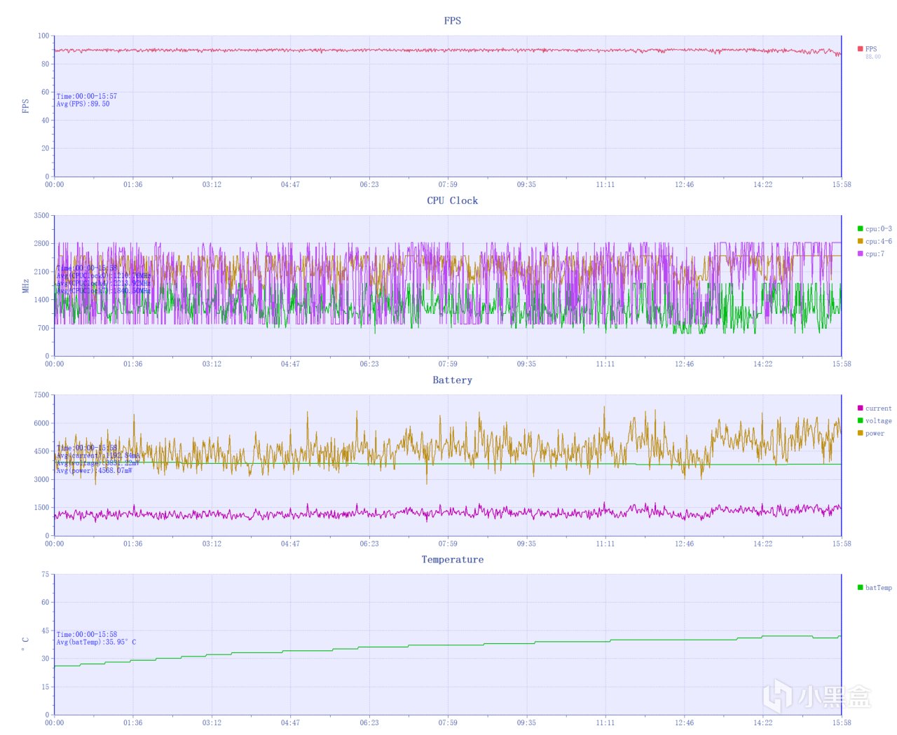 和平精英流畅90帧,15分钟帧率能跑到平均89.50,平均温度35.95度,平均功耗4.57W,相比888那是好了太多。