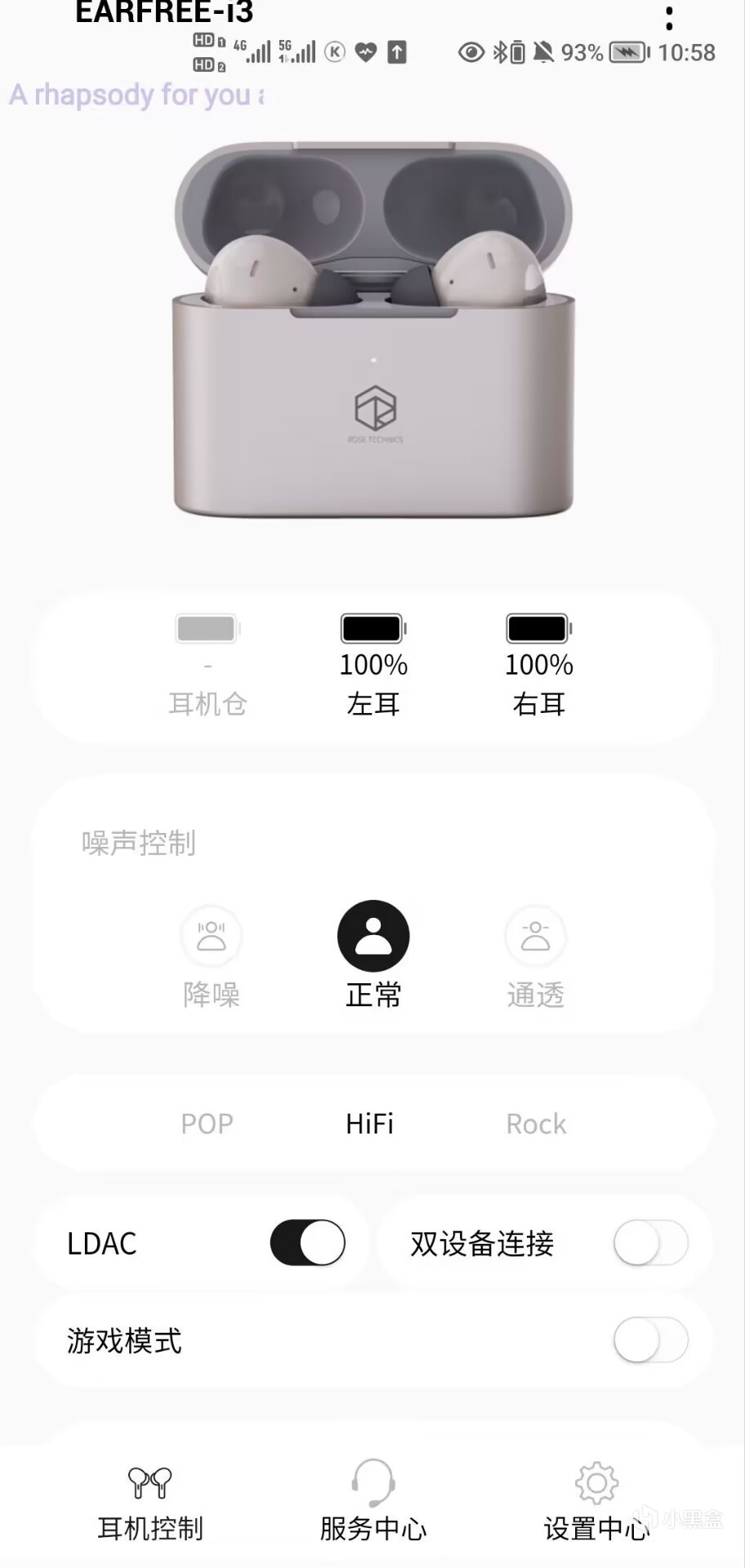 弱水时砂的APP也是在八月底适配了i3,在APP中我们可以进行一系列的设置,包括噪音模式的选择,音乐风格的选择,LDAC、双设备连接与游戏模式的开启与否,自定义触控区域功能等,还可以看到具体的电量,不过目前经常会碰到连接失败的问题,虽然一直也有在优化,但是确实有点难受。