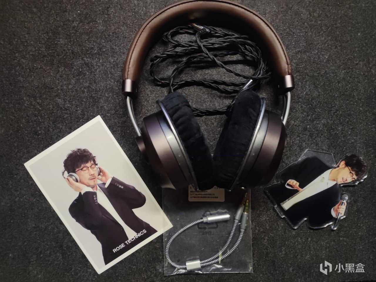 全家福:耳机里的只有一根数据线、一个说明书和耳机本体,耳机外还赠送了一个转接头和一个立牌。