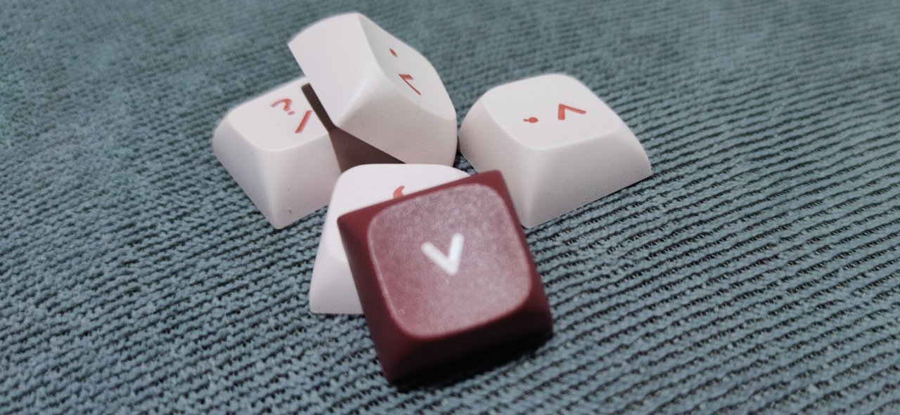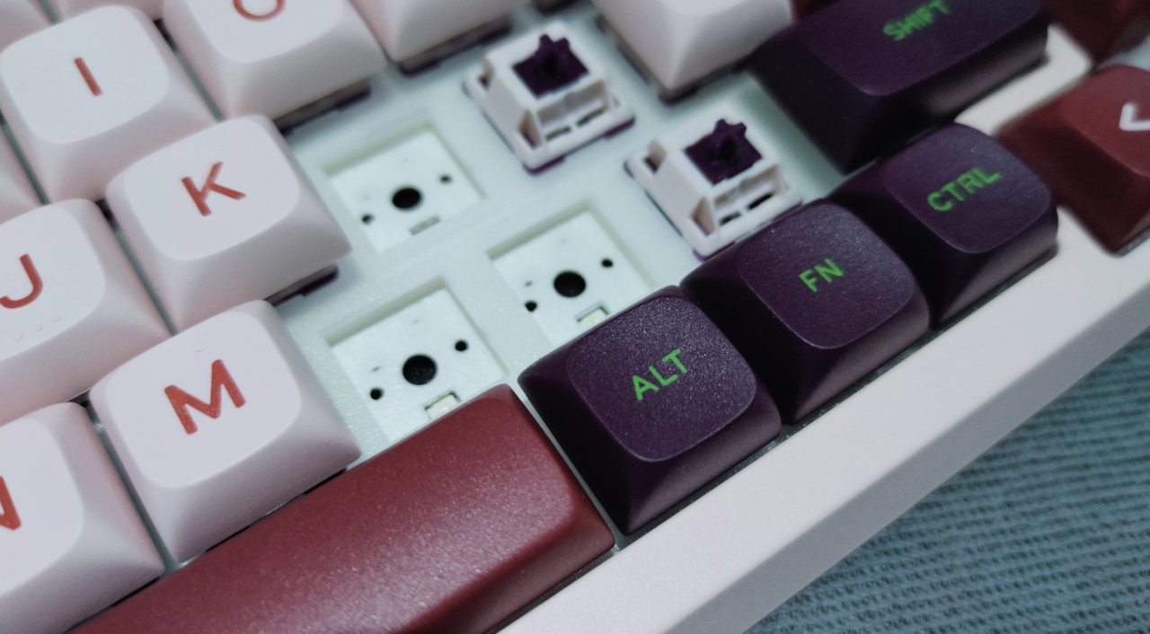键帽上两者都采用的是PBT材质键帽,高度为MDA高度的球形键帽,颜值方面还是不错的,并且值得一提的是本身还进行了哑光的处理,再加上本身PBT的材质,整体顺滑不易打油,触感优秀,不易打油。