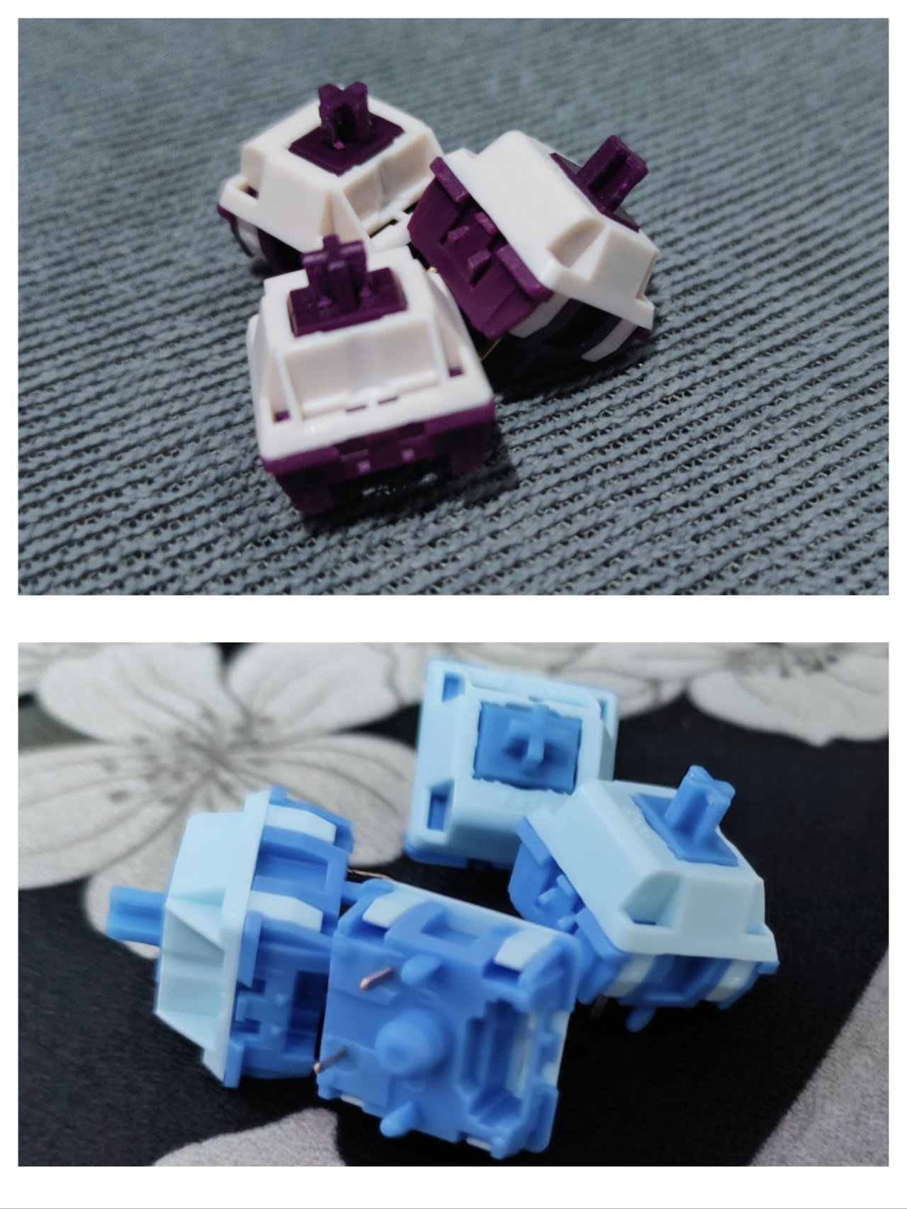 轴体方面是固定的,碧蓝海是相聚轴,弥豆紫是相逢轴,但是因为我恰好呢之前买过z98潮玩版,当时买的刚好是碧蓝海,手头就恰好有了相聚轴,给大家做了简略的对比吧。