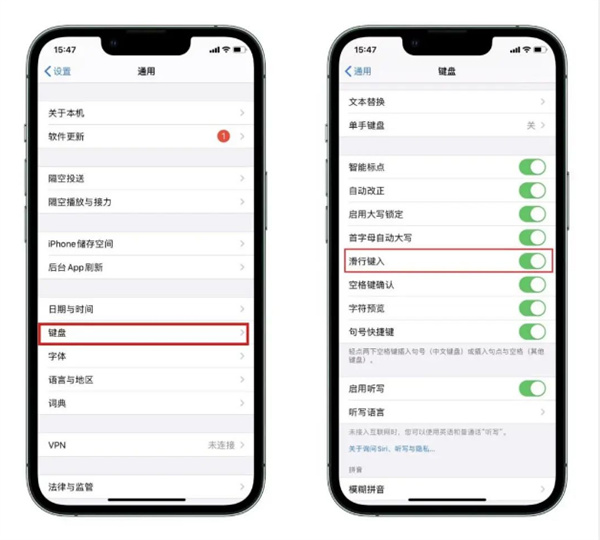 在键盘设置中打开滑行键入,这样打字打久了也不会出现手指酸痛的情况。
