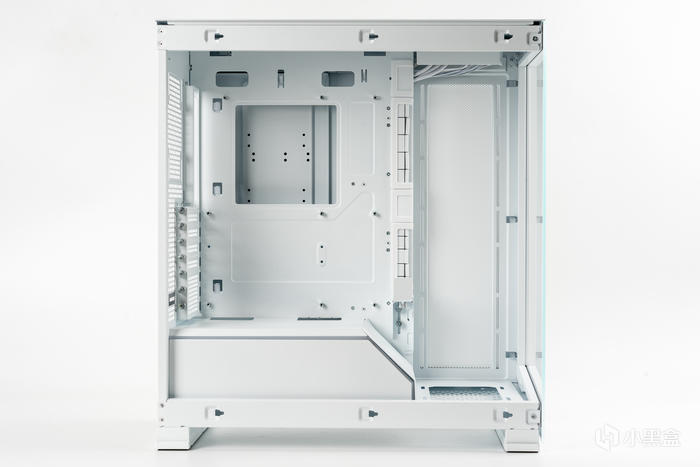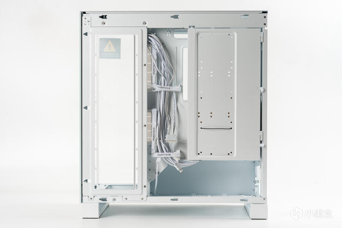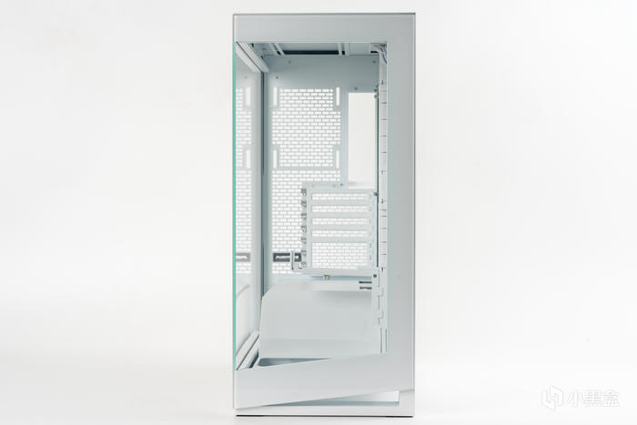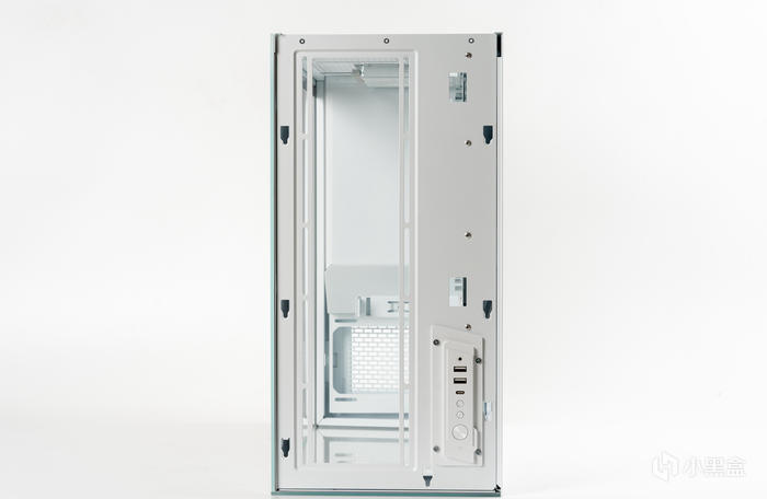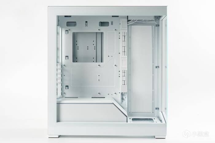 NV5机箱内部,主板右边的冷排位置可装冷排或者风扇,也可以作为进风使用
