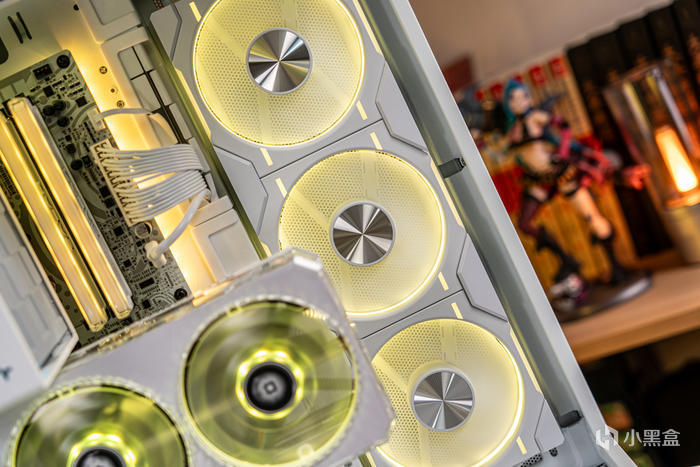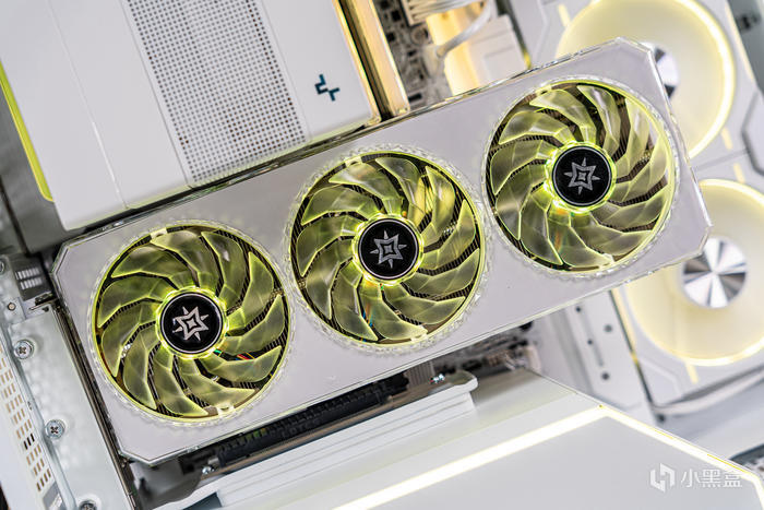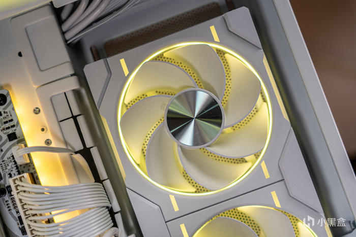 3个星曜静霜大风扇,采用三折式扇叶设计实现更强风流,同时还支持智能启停和ARGB炫彩灯效