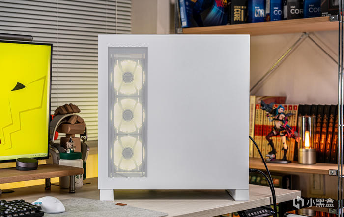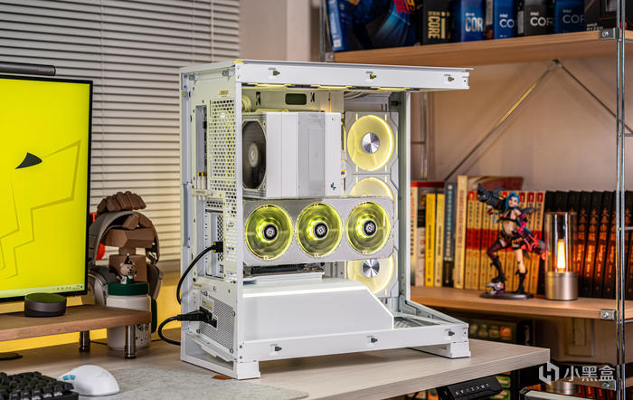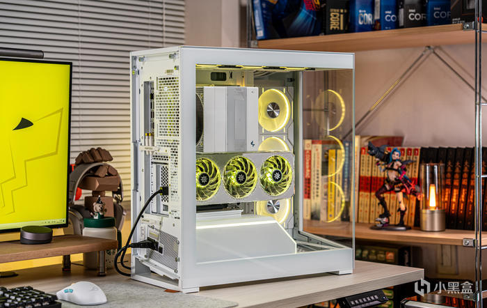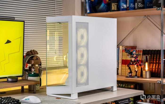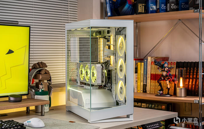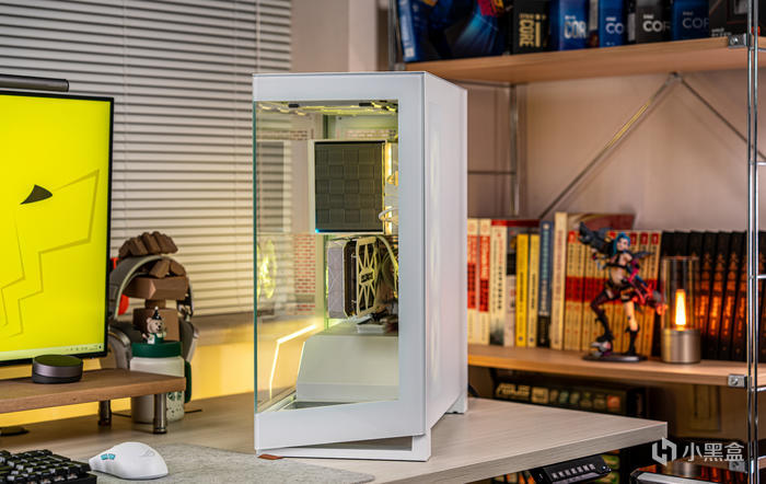 今天带来的是一台创作型白色主机的装机,使用的是追风者NV5白色款标准中塔海景房机箱,看多了胖胖的海景房,看这类标准中塔结构优化而来的机箱也不错,至少占地面积不大,因为NV5的尺寸只有477x239x528mm的长宽高,比例比较协调,兼容性上440mm显卡、180mm高塔散热器、230mm的电源长度基本可以海纳百川,而顶部和侧面双360冷排也刚刚好,0.8mm钢架和1mm加固件用料让整台NV5机箱结构稳如泰山,另外8个风扇位的满配布局就是底部和侧边4个风扇位进风、顶部和尾部4个风扇位出风,此次使用了风冷形式没有多配,只使用三进三出的追风者D30积木风扇配置。