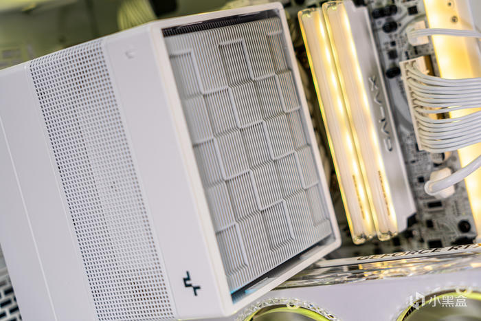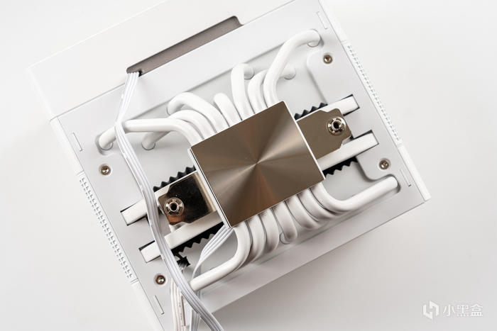 散热器采用规整的正方体设计,双塔中间的风扇位采用磁吸顶盖设计,巧妙得将风扇位置隐藏